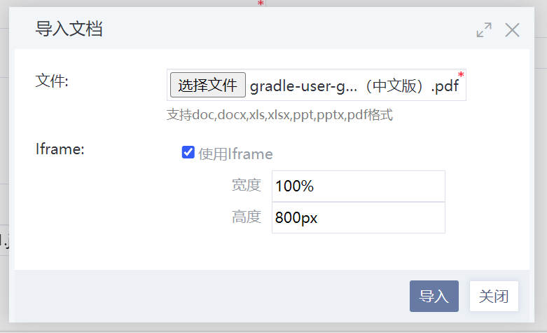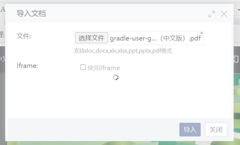 开发分支增加PPT、PPTX、PDF文件导入功能,当选择pdf文件时,会提示是否使用iframe导入方式,不选择则直接解析pdf文件